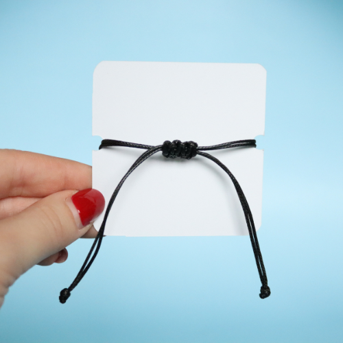 Bracciale regolabile in cordoncino e ciondolo in acciaio inox con fiore blu intersecato nella resina
