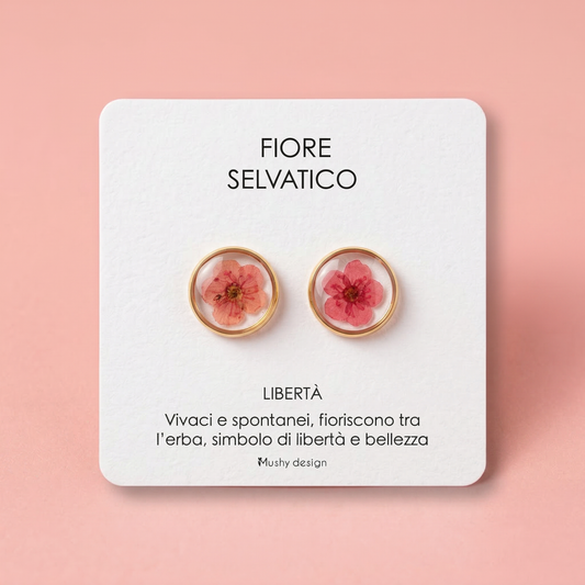Paio di orecchini a lobo in acciaio inossidabile con fiore selvatico fucsia