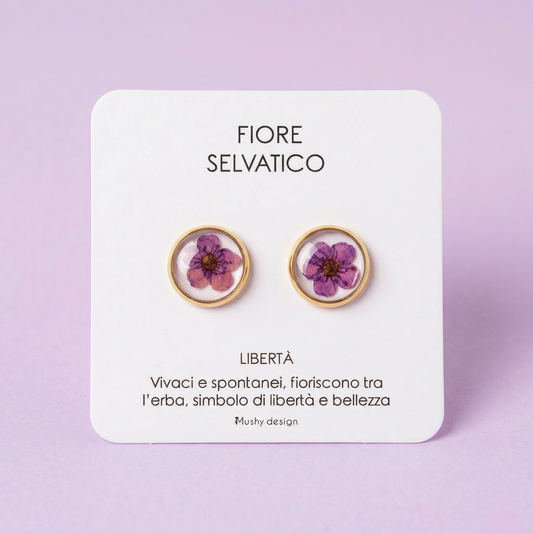 Paio di orecchini a lobo in acciaio inossidabile con Fiore selvatico viola