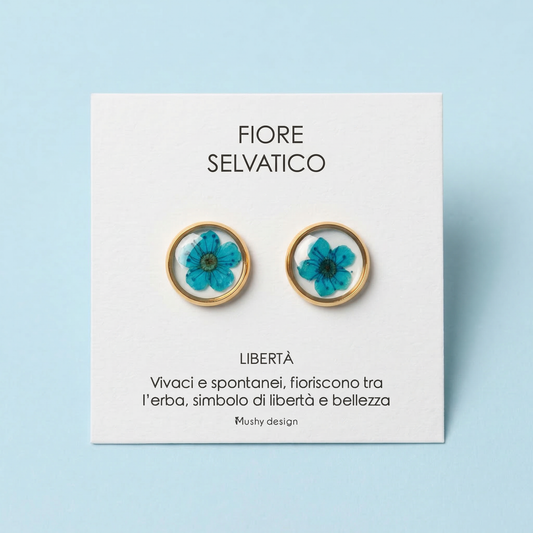 Paio di orecchini a lobo in acciaio inossidabile con fiore selvatico blu