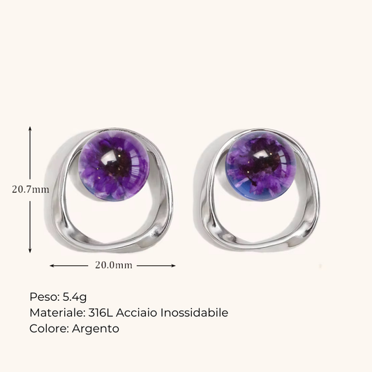 Orecchini a lobo in Resina con Fiori Veri di Glixia viola - Acciaio Inox