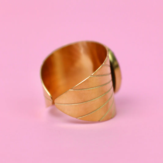 Anello SEMI in acciaio inox oro e Pizzo della regina Anna turchese intersecata nella resina