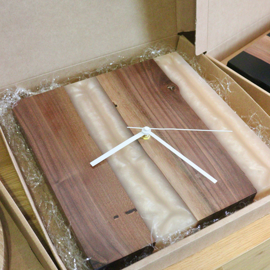 Orologio da parete quadrato in resina bianca e legno di Ciliegio