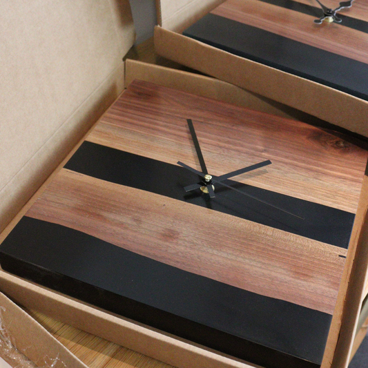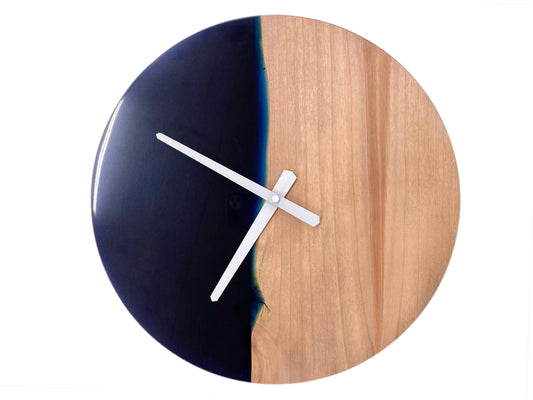 Orologio da parete in legno di Rovere e resina nera Ø33cm