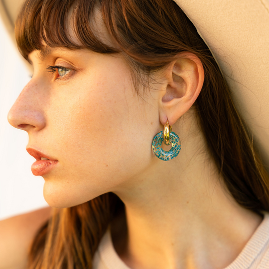 Paio di orecchini BLOOM in acciaio inossidabile e resina con Pizzo della regina Anna turchese