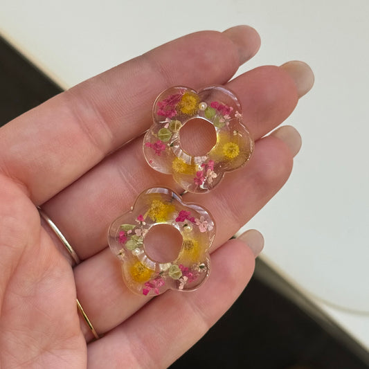 Paio di orecchini BLOOM in acciaio inossidabile e resina con fiori selvatici
