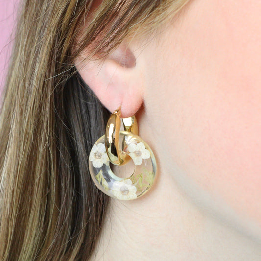 Ciondoli INTERCAMBIABILI per orecchini a cerchio BLOOM - fiore Gypsophila in resina