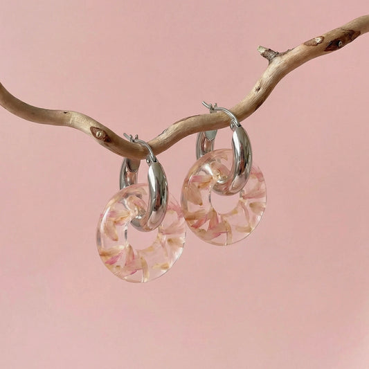 Paio di orecchini a fiori in acciaio inossidabile e resina con fiori veri di Nebbiolina - BLOOM