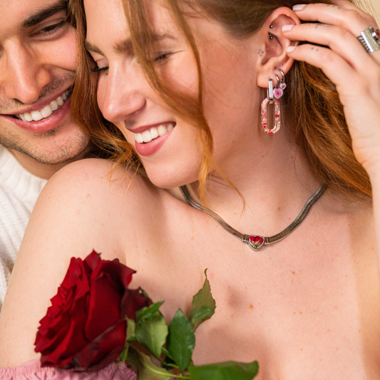 Collana girocollo cuore in Resina con Fiore di Rosa Rossa - Acciaio Inox