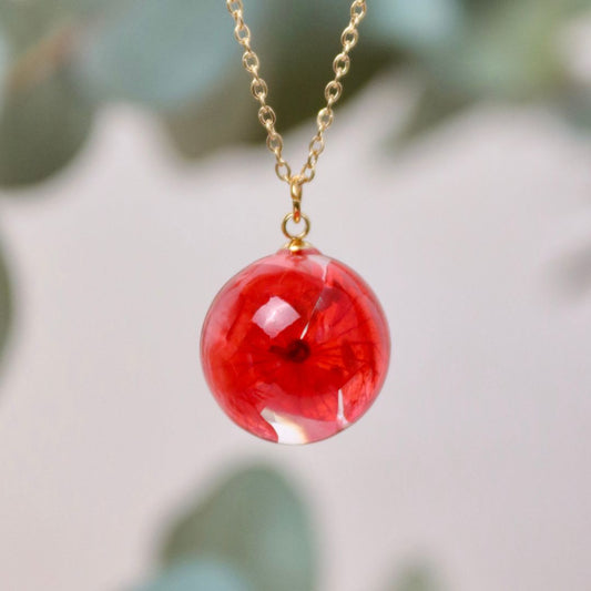 Collana sfera con fiore vero Ortensia rossa - collezione BOLLE