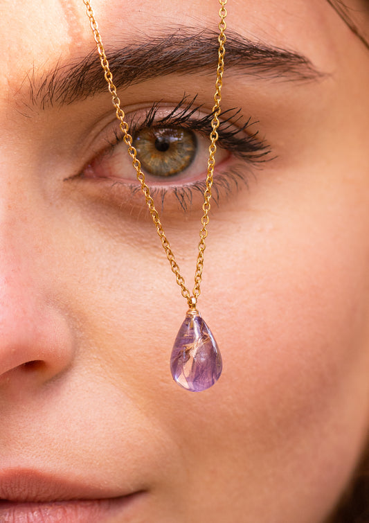 Collana RUGIADA in acciaio inossidabile e ciondolo in resina con Statice