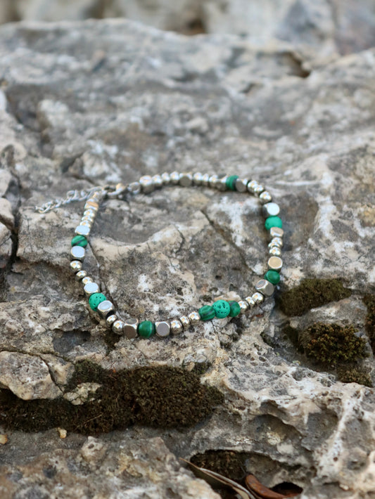 Bracciale da Uomo Artigianale Regolabile in Acciaio Inox e pietra lavica verde