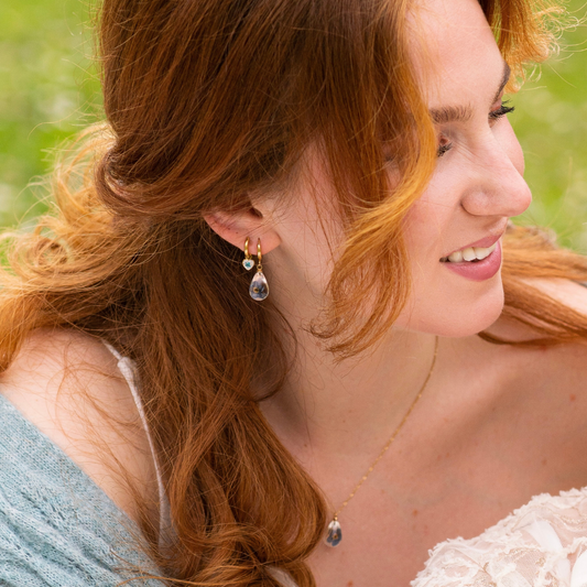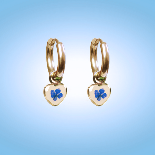 Orecchini a cerchio piccoli in acciaio inox con ciondolo a cuore e Pizzo della regina Anna blu