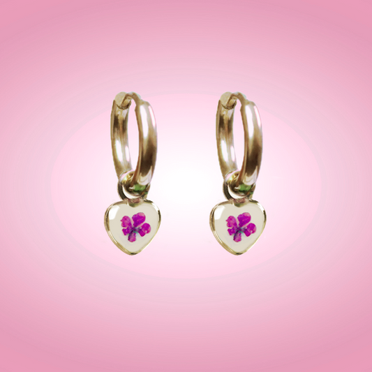 Orecchini a cerchio piccoli in acciaio inox con ciondolo a cuore e Pizzo della regina Anna rosa