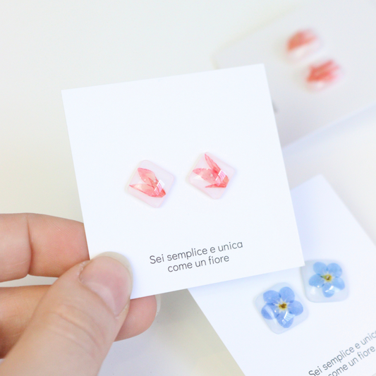 Paio di orecchini BLOOM in acciaio inossidabile e resina con fiori selvatici