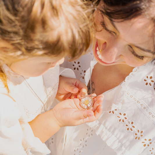 Collana con Margherita in resina e montatura in acciaio inossidabile