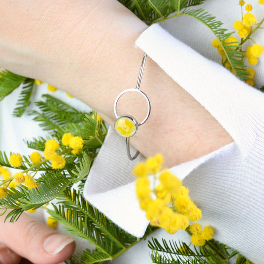 Bracciale ABBRACCIAMI in acciaio inox con resina e Mimosa