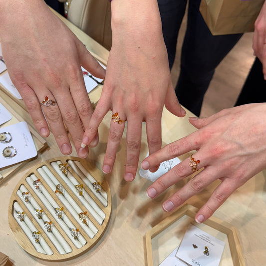 Anello alveare ape in acciaio inossidabile oro e miele in resina