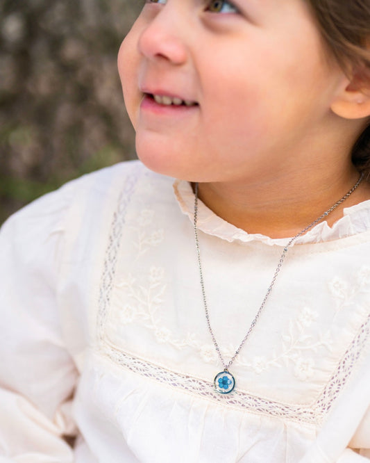 Collana in acciaio inossidabile e ciondolo in resina con fiore blu