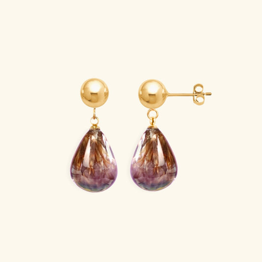 Orecchini Pendenti in Resina con Fiori Veri di Statice viola - RUGIADA, Acciaio Inox