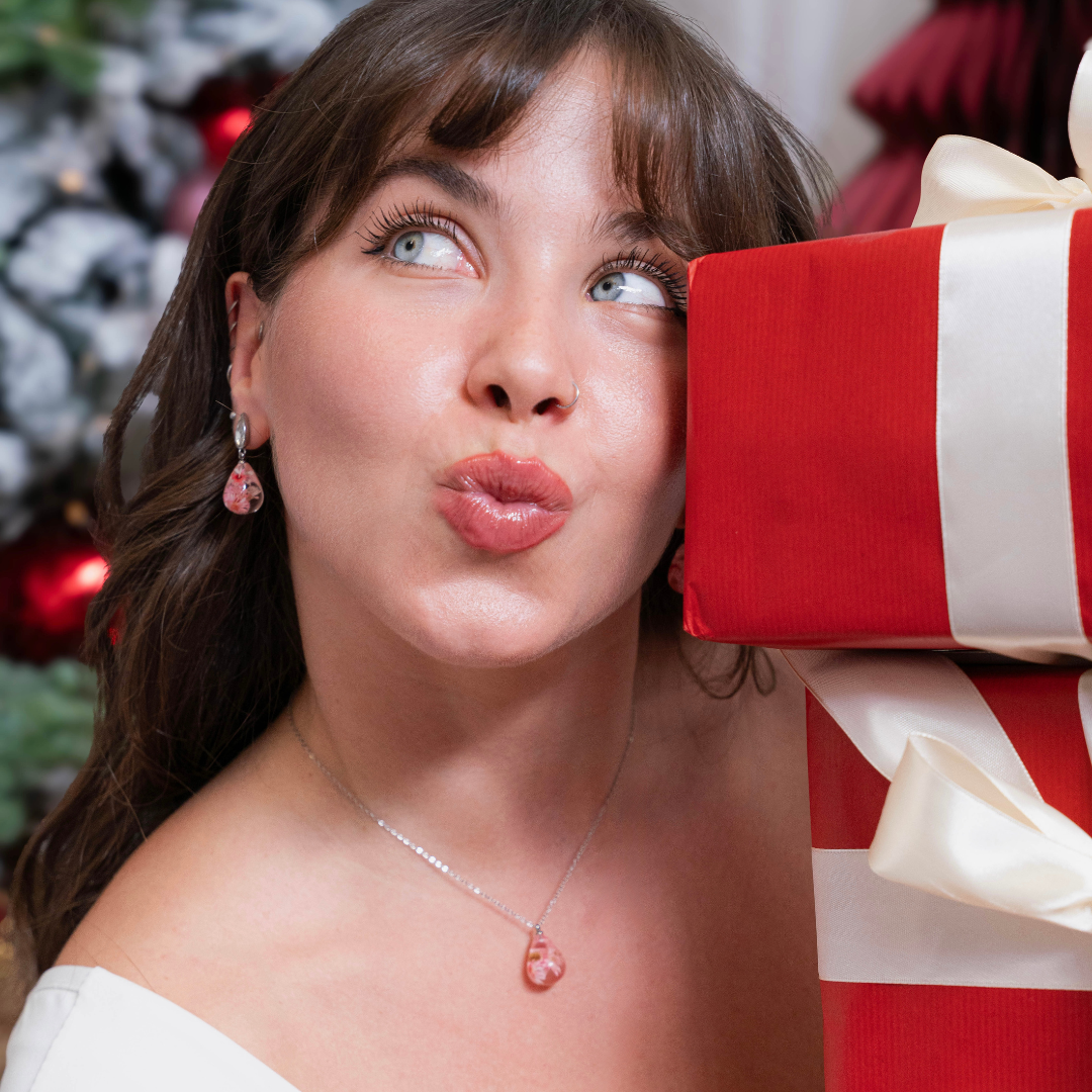 Collana in resina con fiori veri, progettati in Italia da Sara Raspanti. Realizzati in acciaio inox di alta qualità e rifinita a mano con fiore di Glixia incastonata nella resina epossidica.