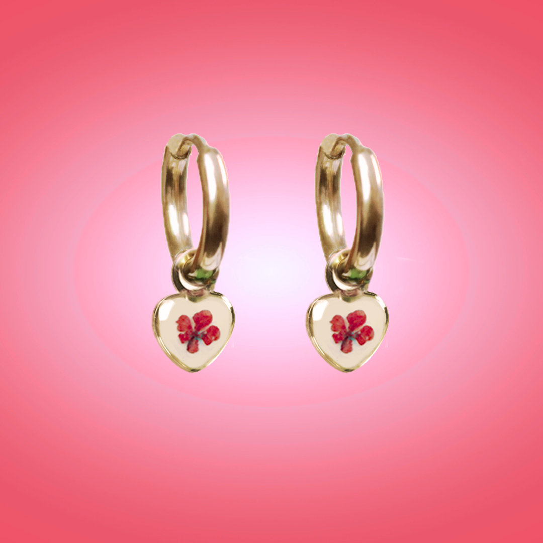 Gioielli fatti a mano con fiori veri intersecati per sempre in gocce di resina e montature in acciaio inox anallergico.
