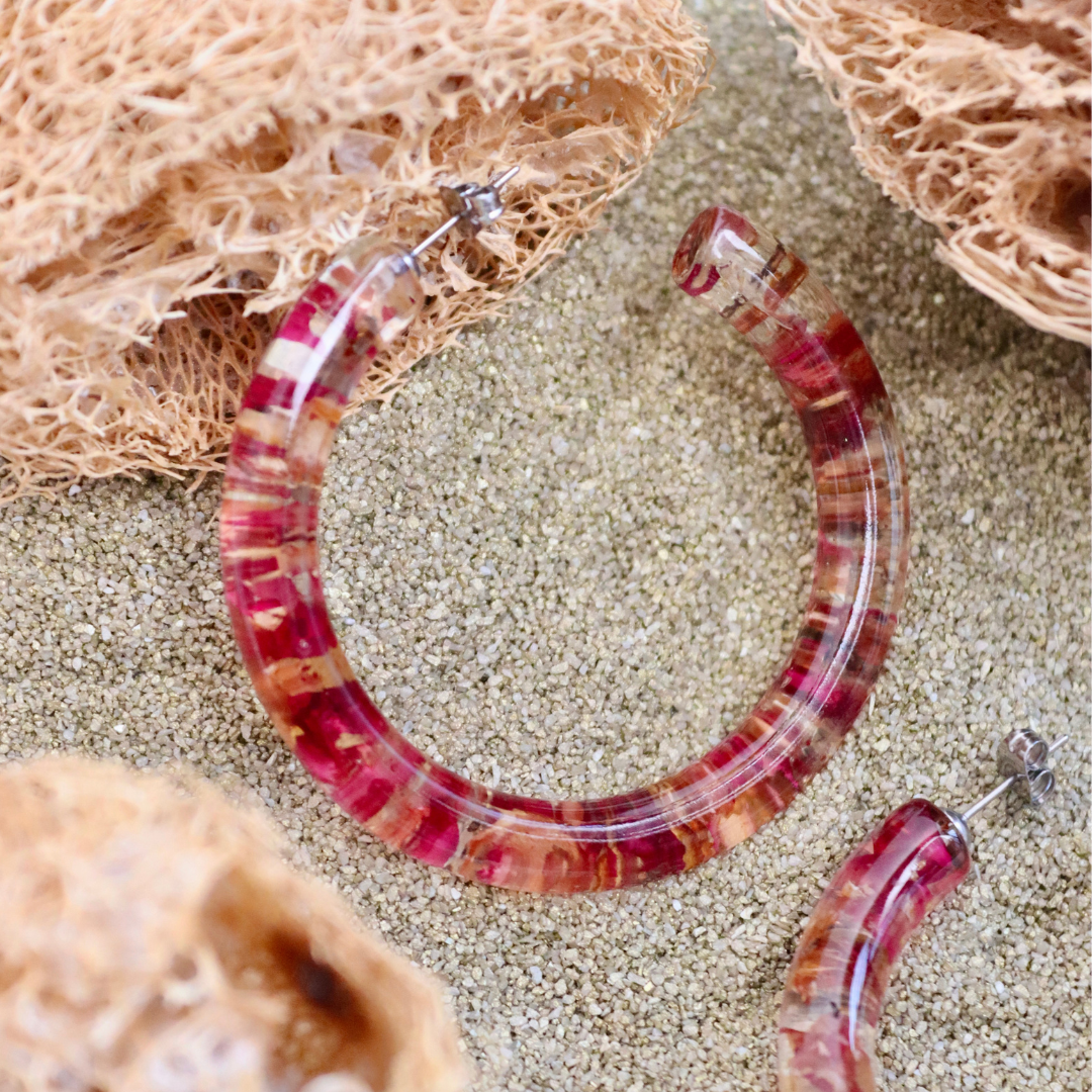 EDEN Orecchini a cerchio grandi in resina con Petali Rosa rossa