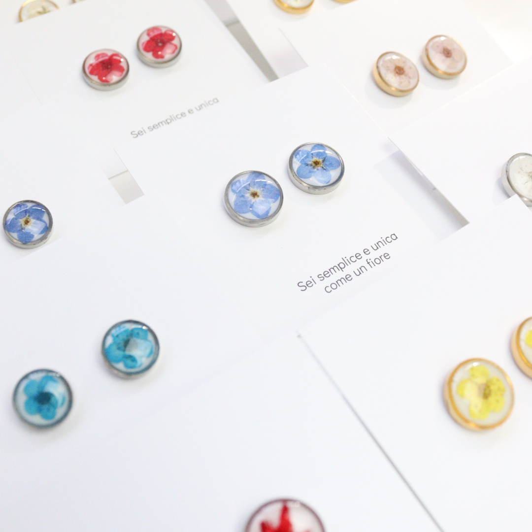 Successivamente, il fiore viene accuratamente essiccato e incorporato in questo gioiello unico e originale tramite la lavorazione delle resine epossidiche.