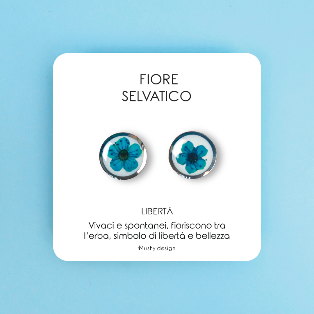 Paio di orecchini a lobo in acciaio inossidabile con Fiore selvatico blu
