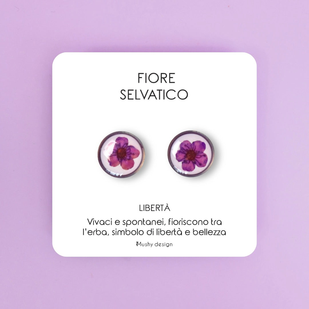 Paio di orecchini a lobo in acciaio inossidabile con Fiore selvatico viola