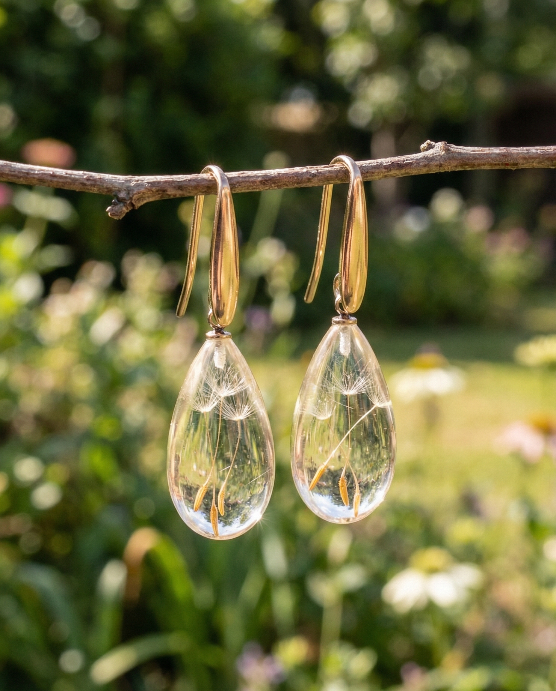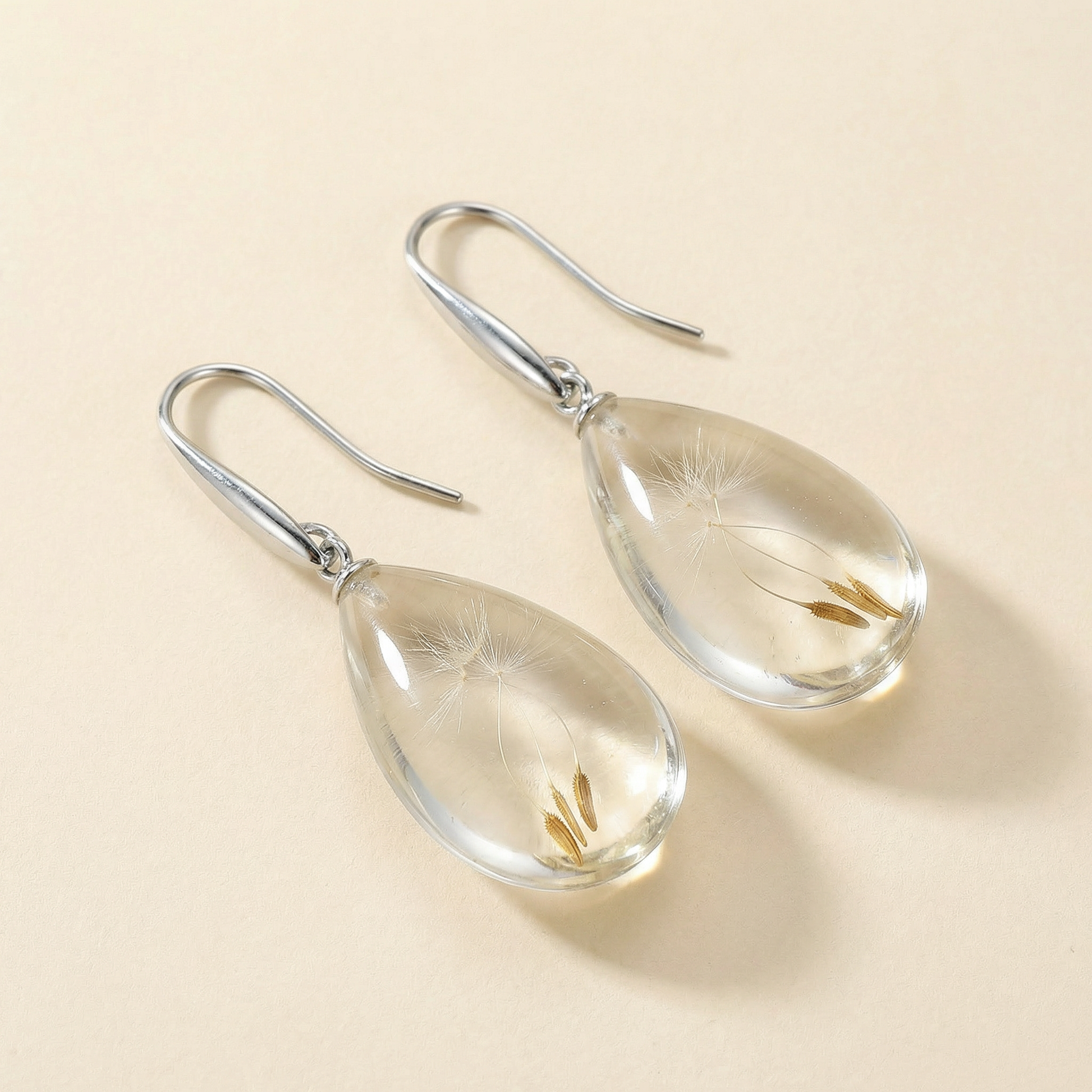 Paio di orecchini in resina pendenti con Soffione - collezione RUGIADA